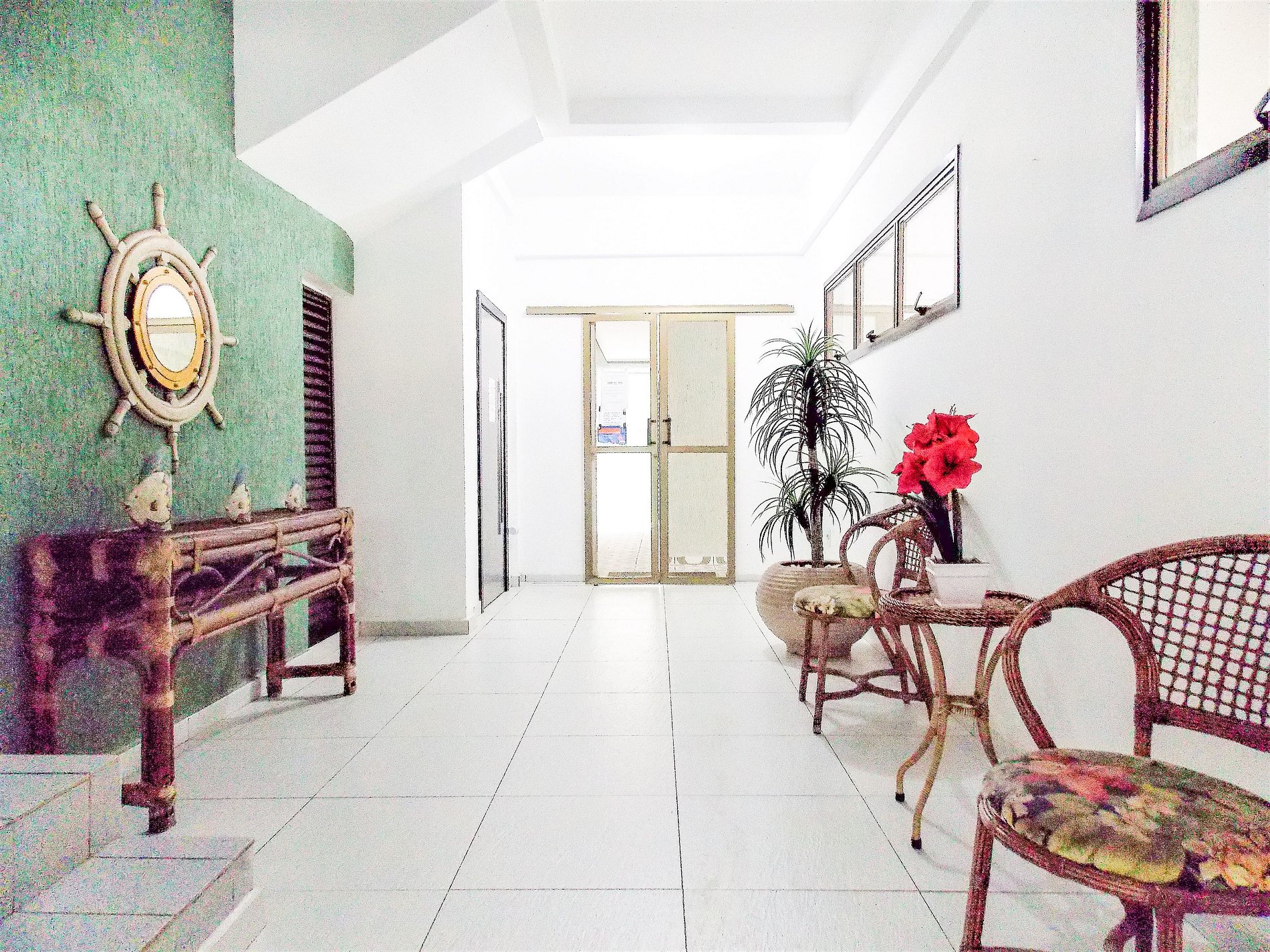 Unidade a uma quadra do mar com 2 suítes, sala com Tv e ventilador de teto, cozinha com armários, utensílios domésticos, microondas, liquidificador, entre outros utensílios essenciais para se fazer um alimento, banheiro social e sacada.