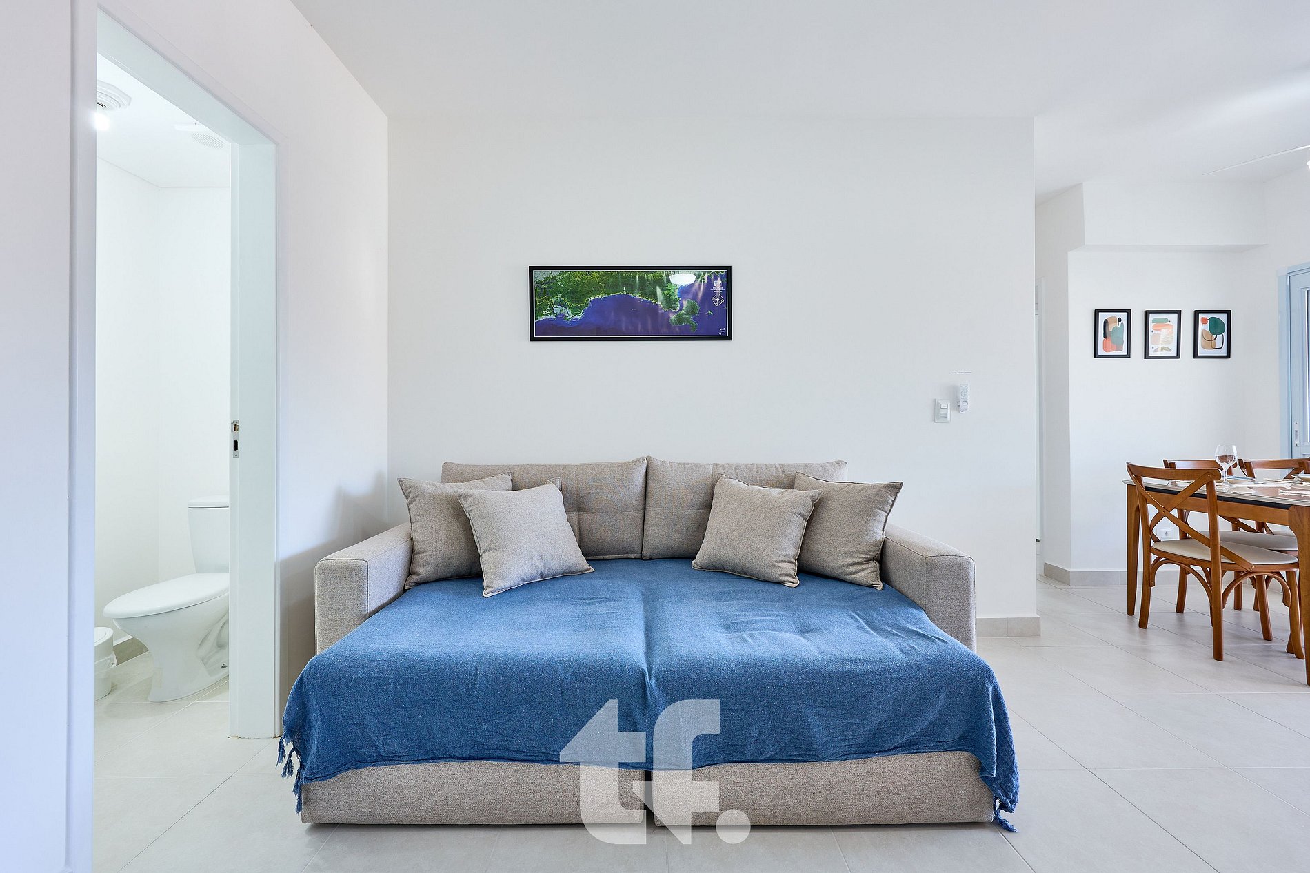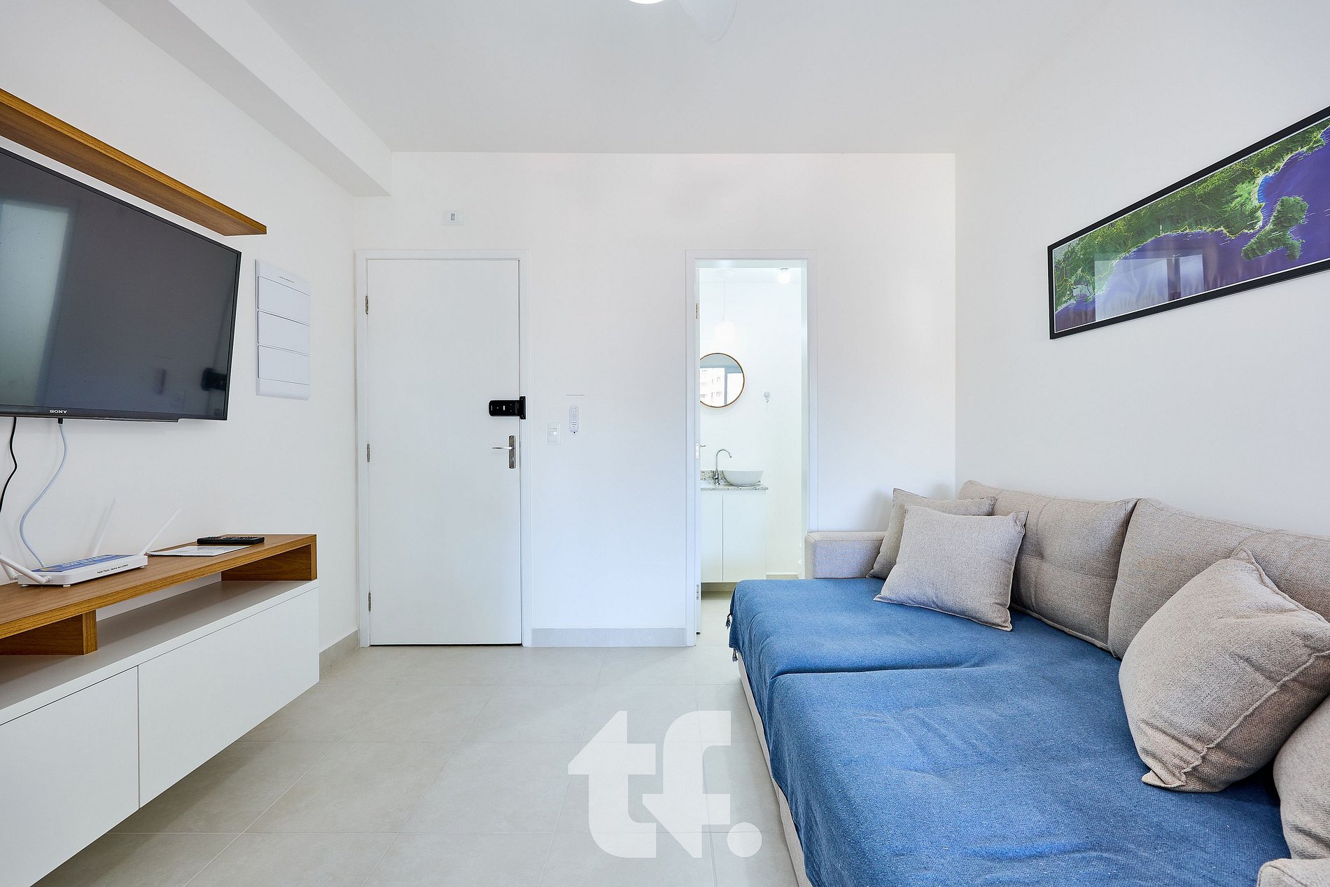 Sala de Estar: Ambiente amplo e iluminado, com TV Smart, ventiladores de teto e móveis planejados, garantindo praticidade e aconchego, a unidade possui fechadura eletronica com senha. O apto acomoda com conforto 4 pessoas + uma criança, ela pode ficar no sofá cama da sala.
