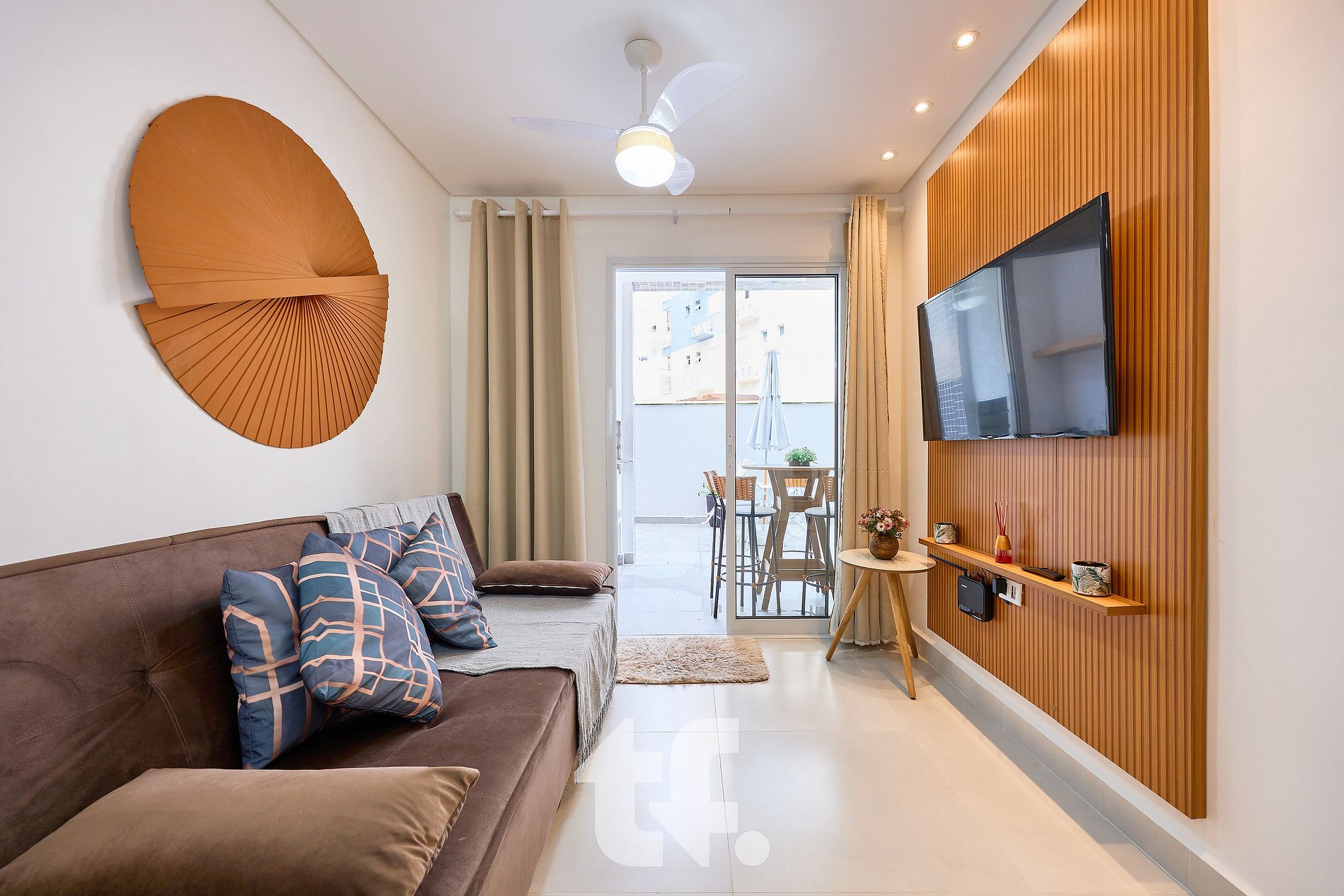 - Sala com TV e ventiladores de teto