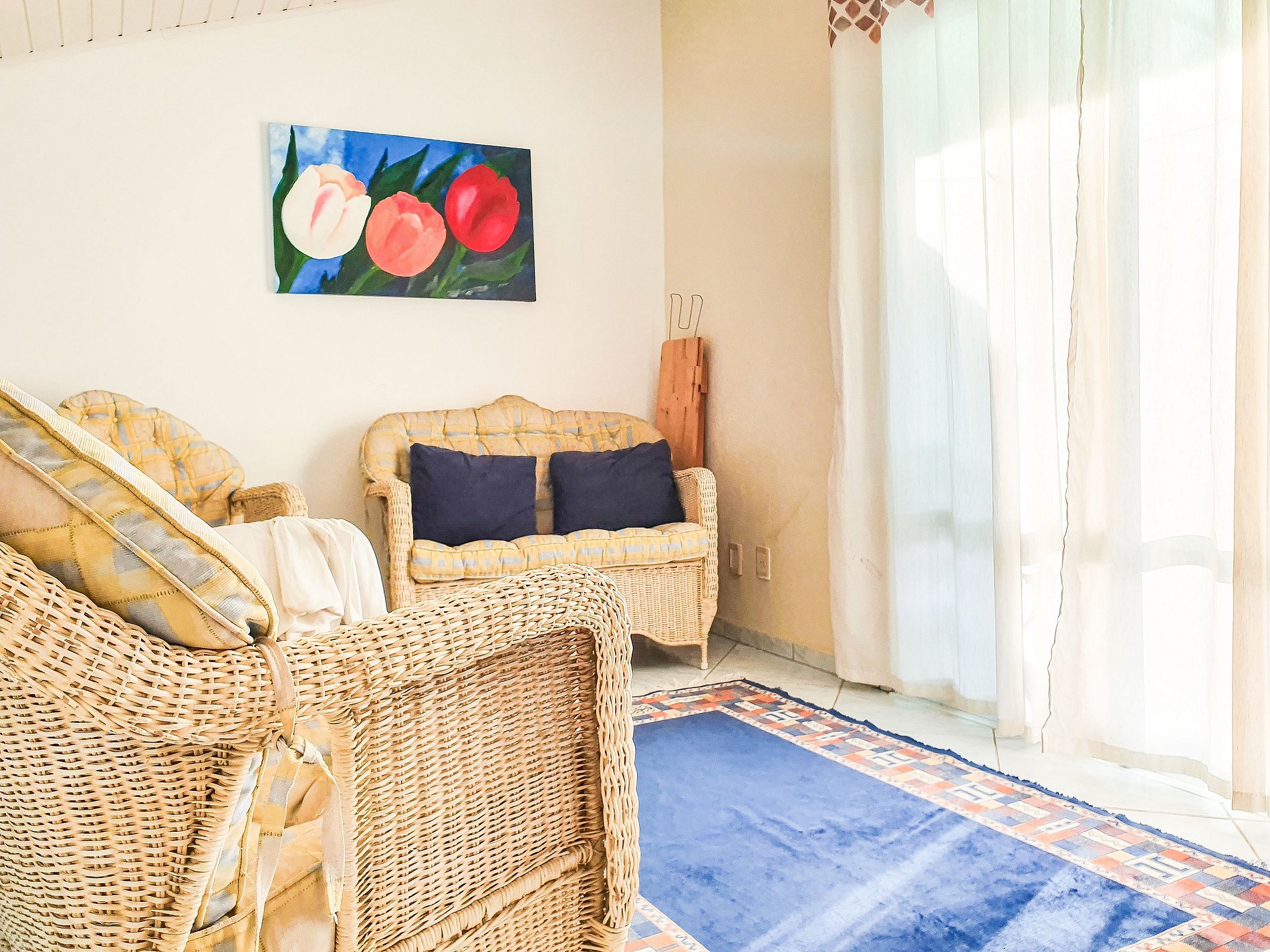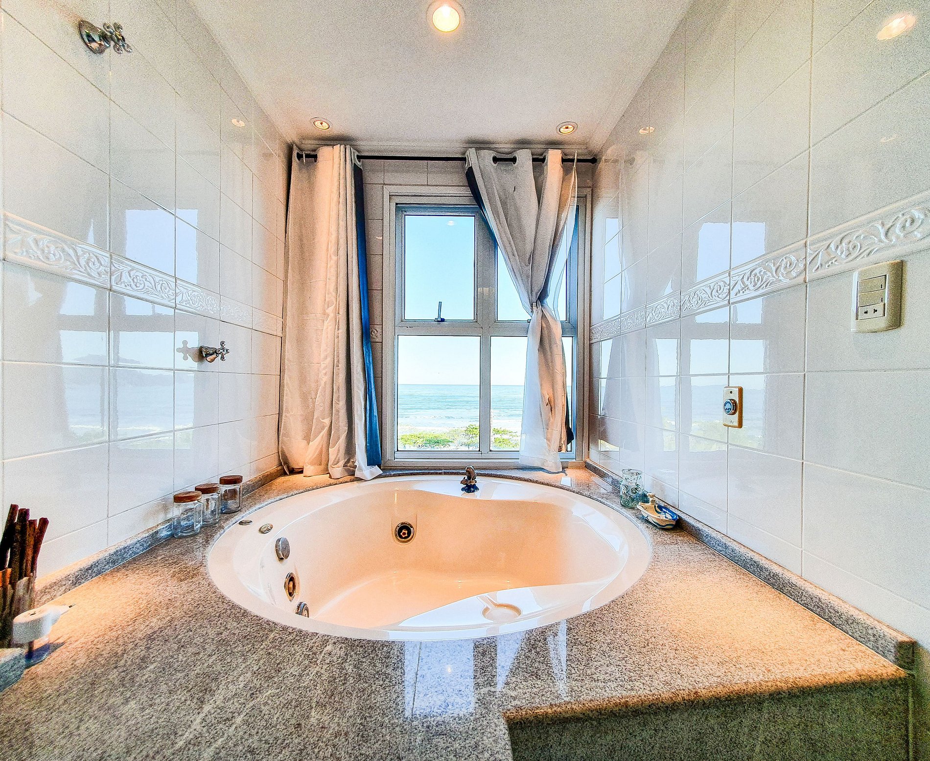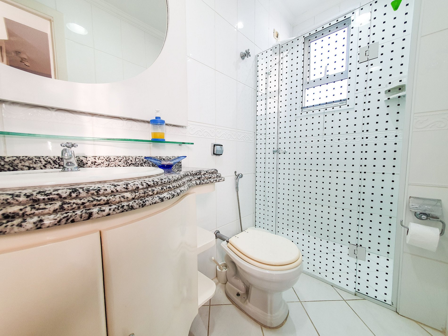 - Suíte 1: cama de casal, ar condicionado, guarda-roupa, TV, banheiro com hidro e vista para o mar