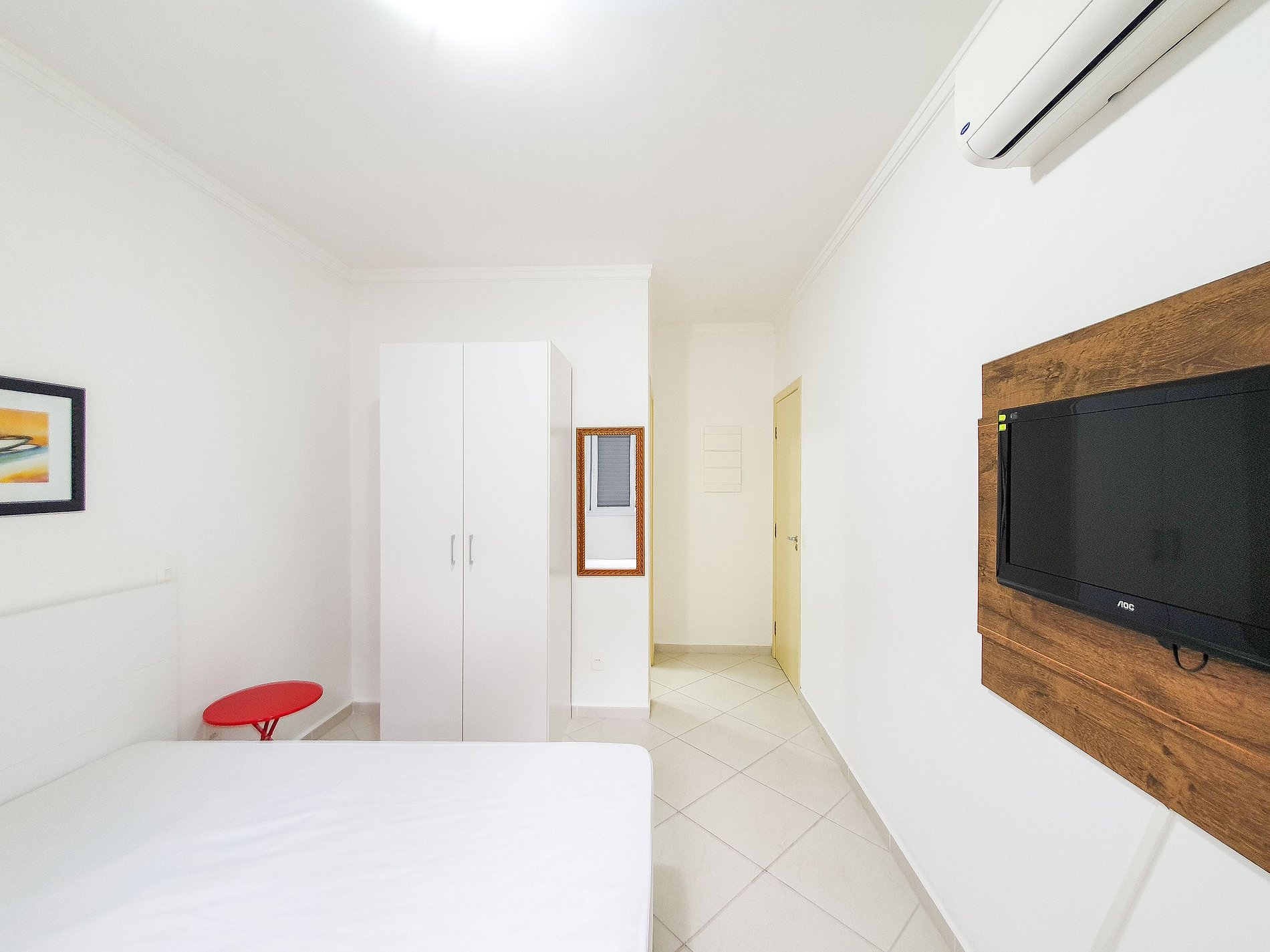 - 2 dormitórios: - Suíte com cama de casal, ar condicionado e guarda-roupa - Dormitório com beliche, colchões extras, ar condicionado e guarda-roupa