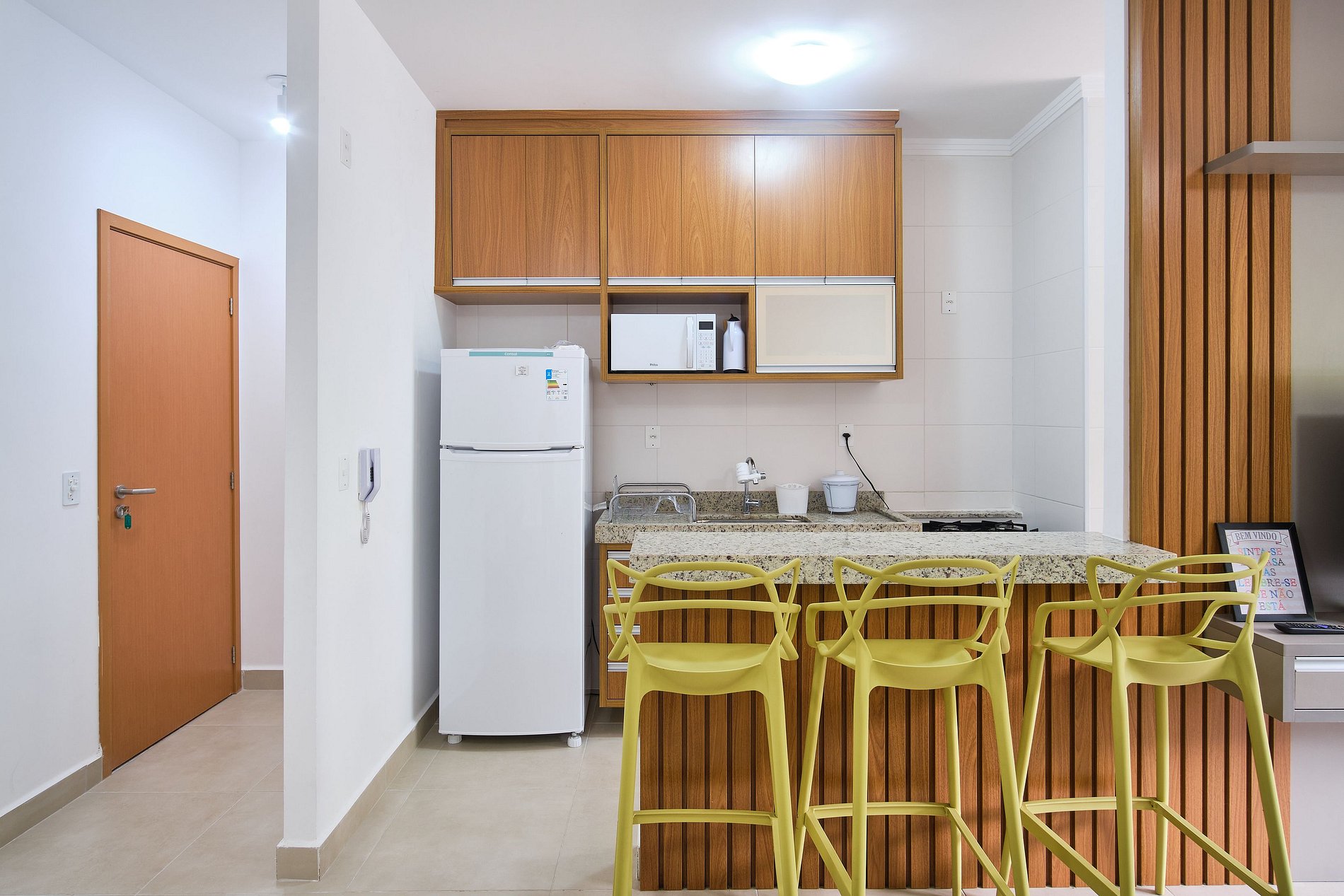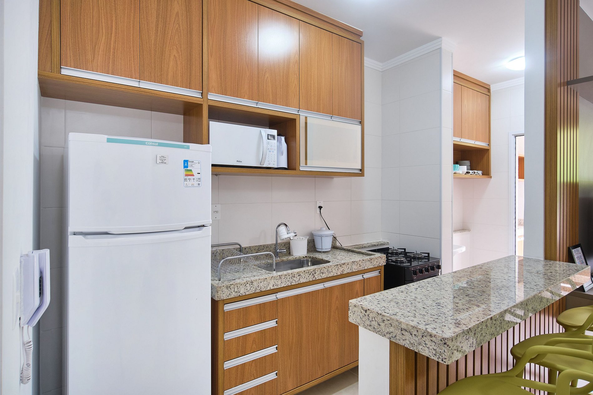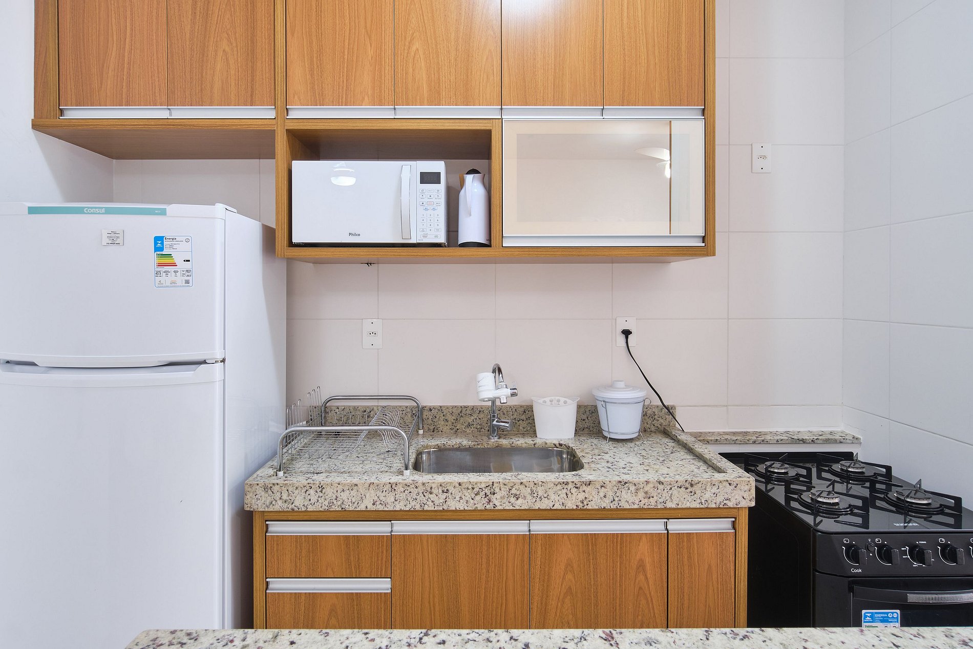 - Cozinha completa com micro-ondas, cafeteira, liquidificador e garrafa térmica