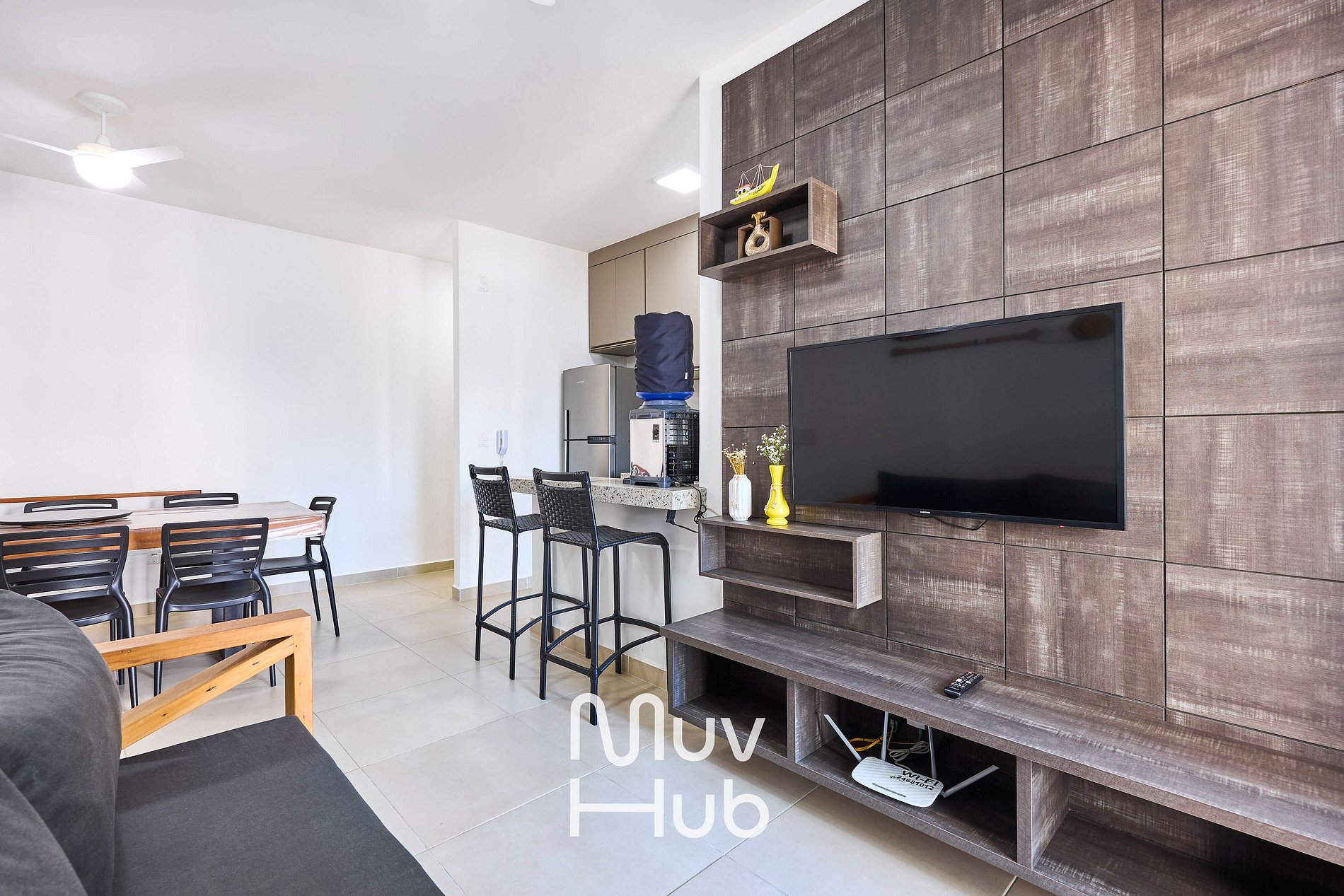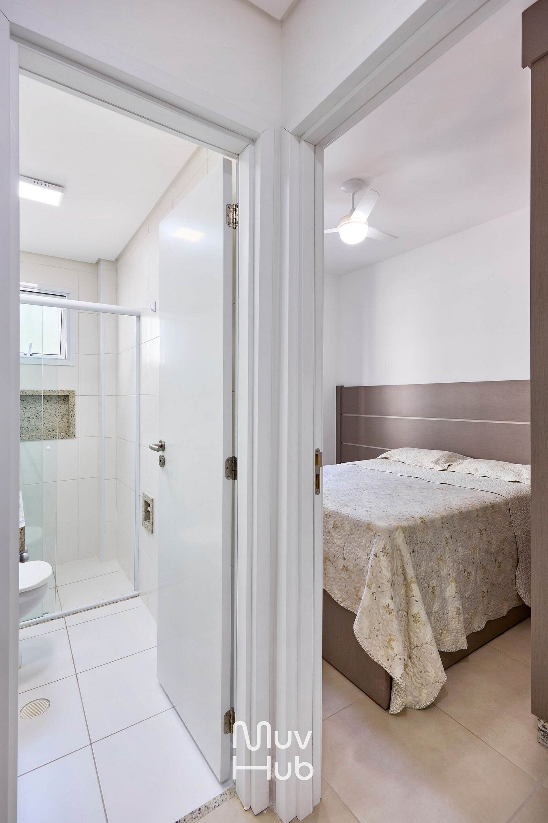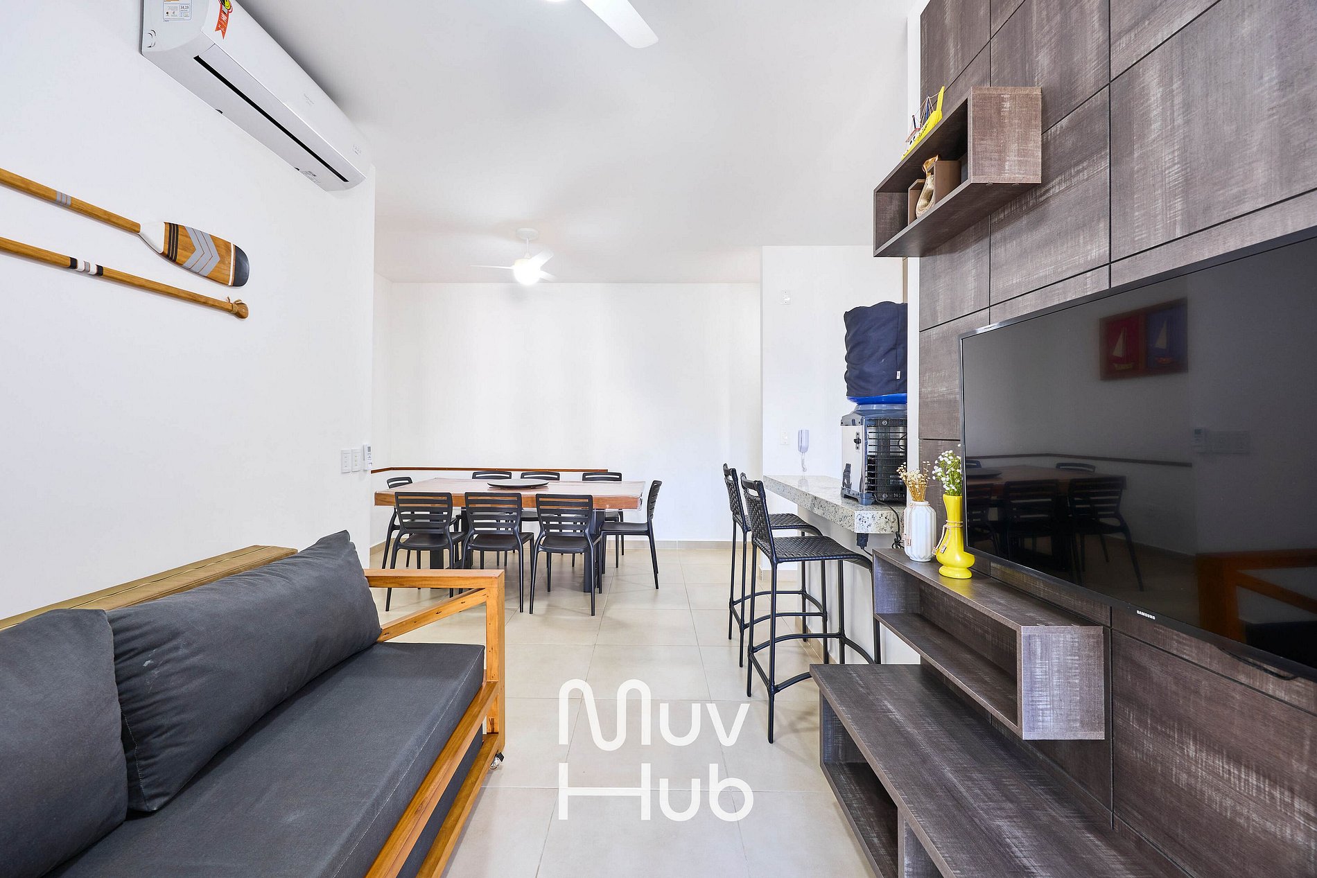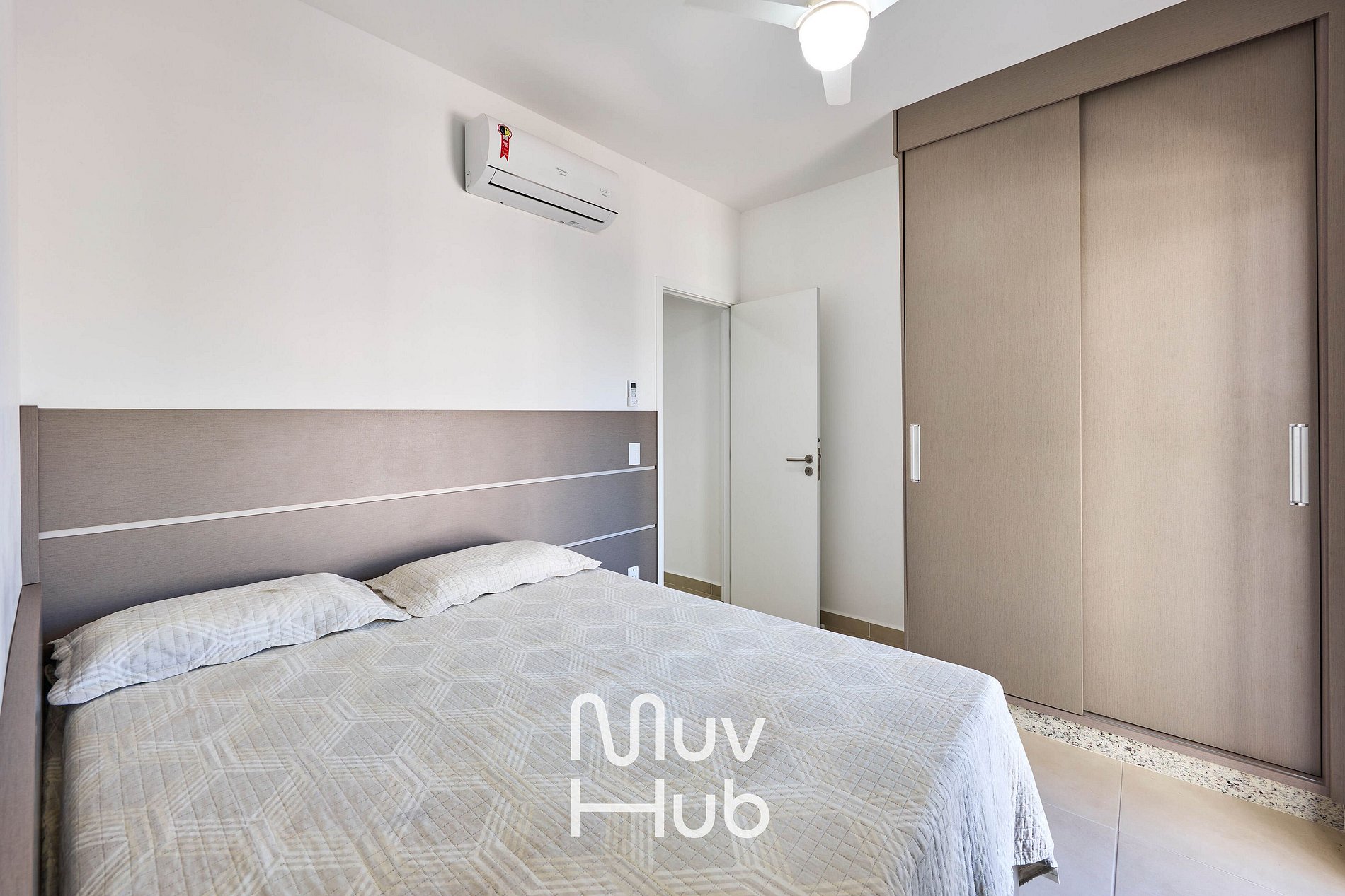 - 2 dormitórios com ar condicionado: - Suíte com cama de casal, guarda-roupa planejado e bicama - Dormitório com cama de casal, colchão extra, guarda-roupa planejado