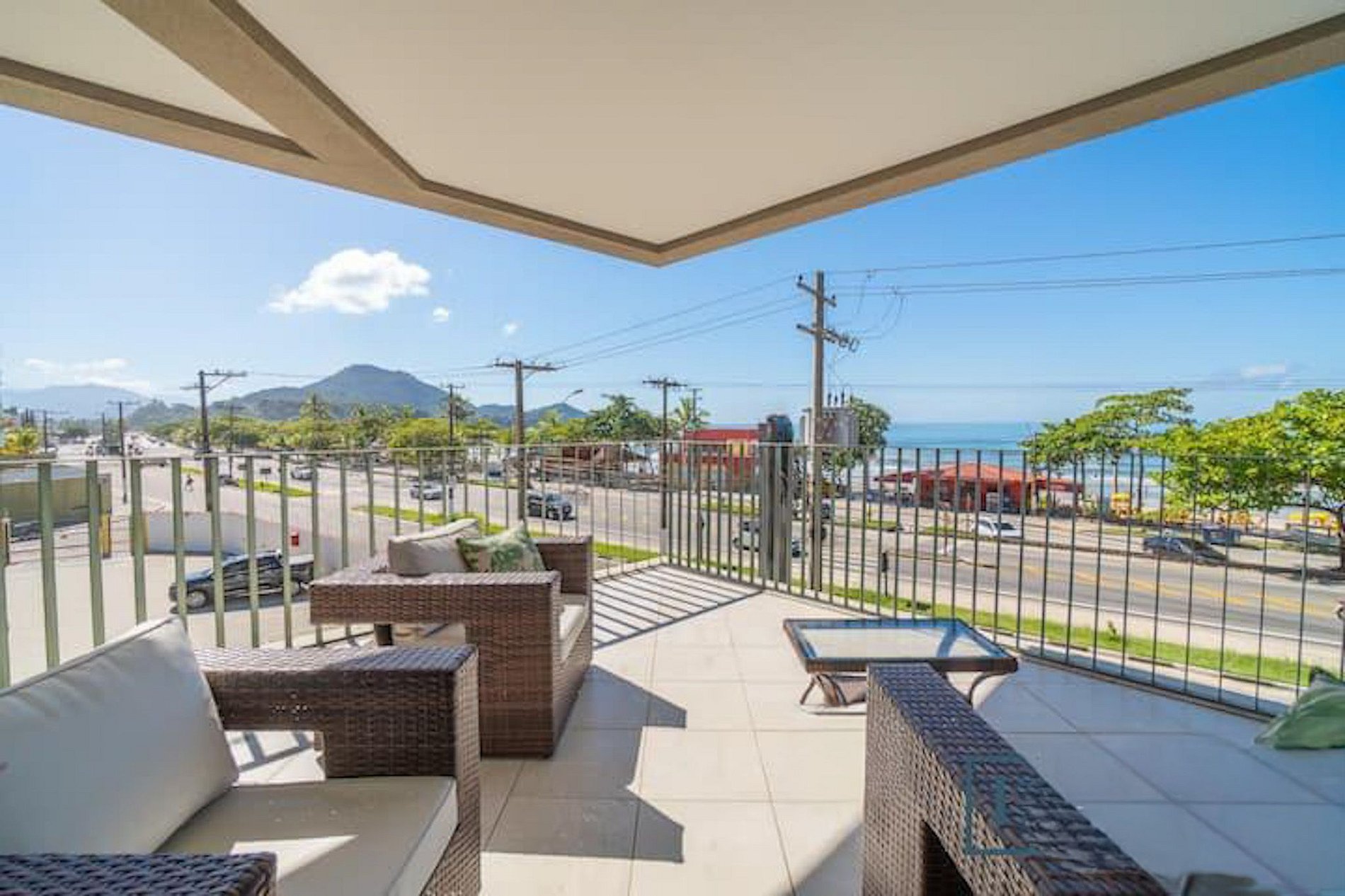 • Varanda com vista para o mar ou para áreas internas do condomínio.