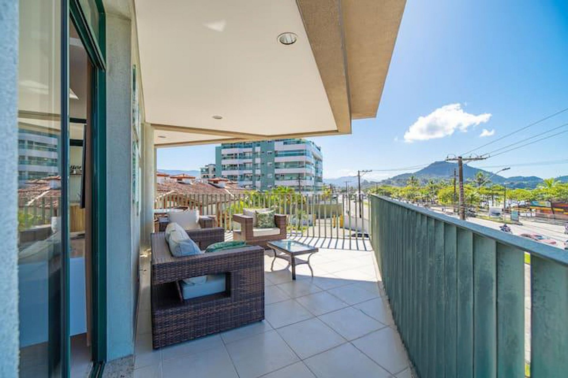 • Varanda com vista para o mar ou para áreas internas do condomínio.