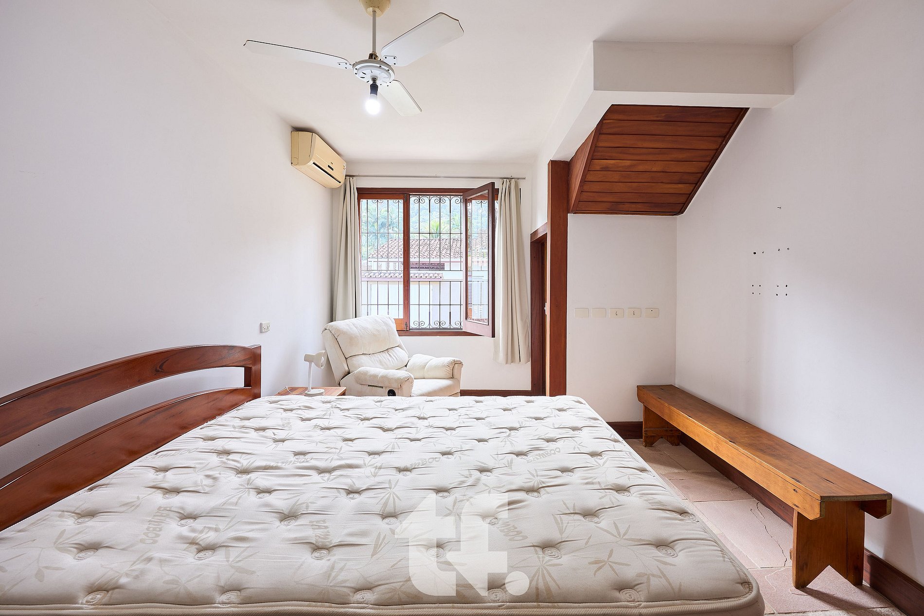 Com seis suítes bem distribuídas, todas equipadas com ar-condicionado, ventilador de teto e camas confortáveis, a casa acomoda até 12 pessoas com tranquilidade.