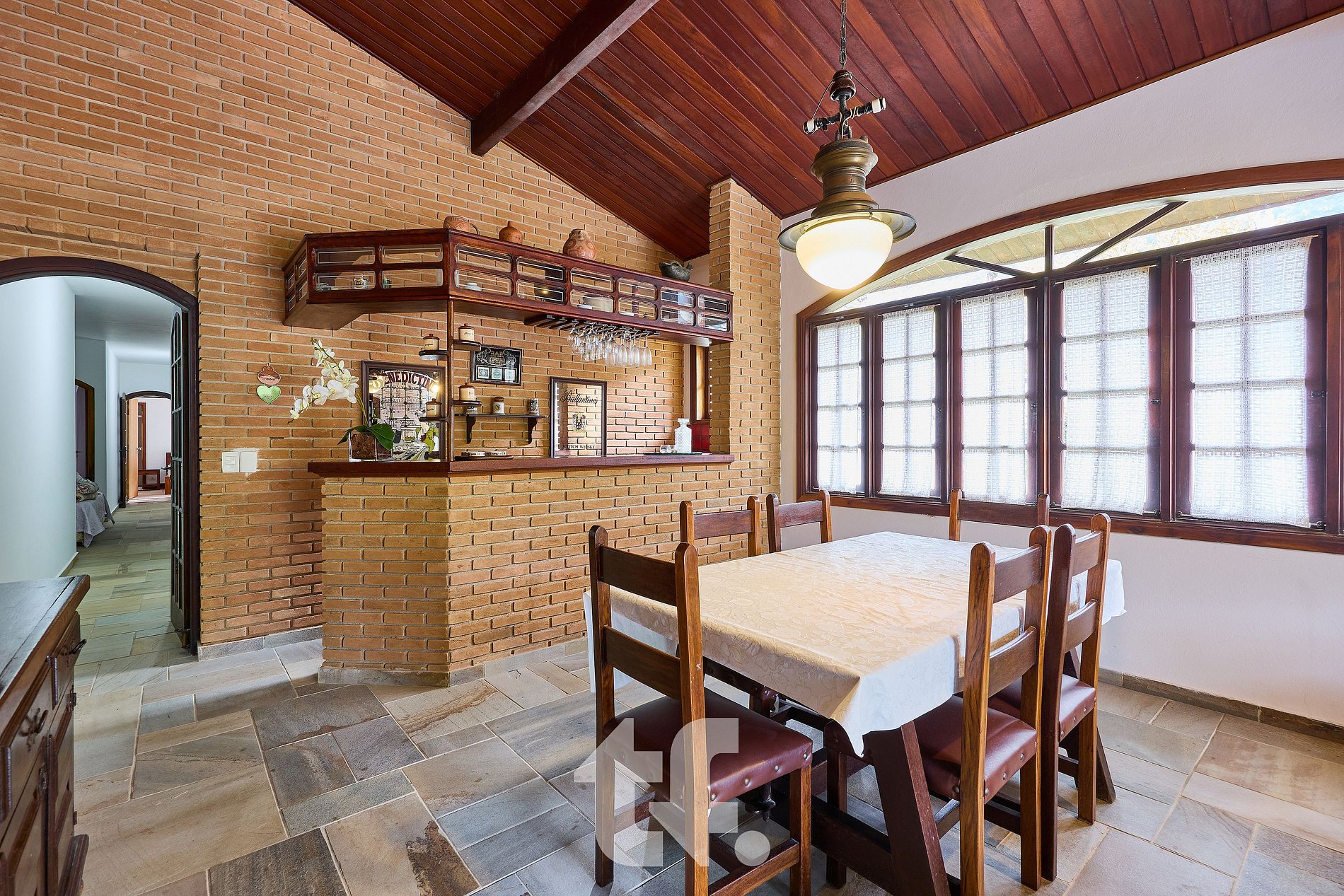 O imóvel acomoda até 12 pessoas, incluindo crianças e bebês de colo, e oferece 5 a 6 vagas de garagem.