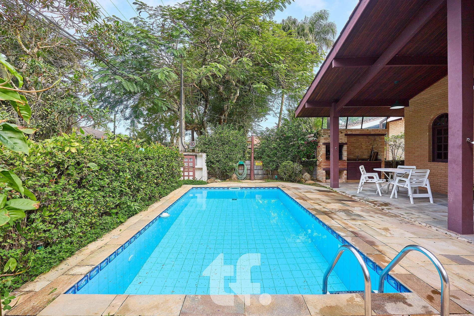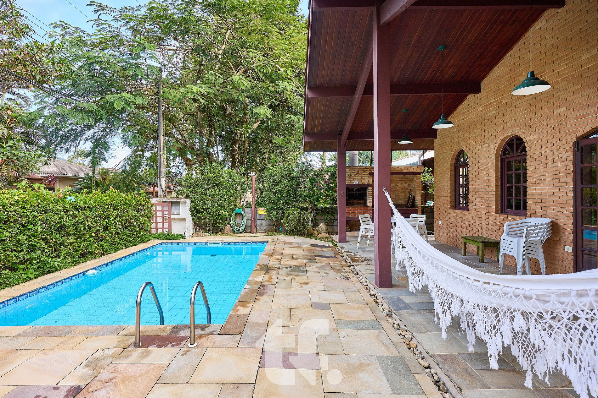 O destaque vai para a área externa com piscina e churrasqueira, que torna a experiência ainda mais completa para confraternizações e lazer ao ar livre.
