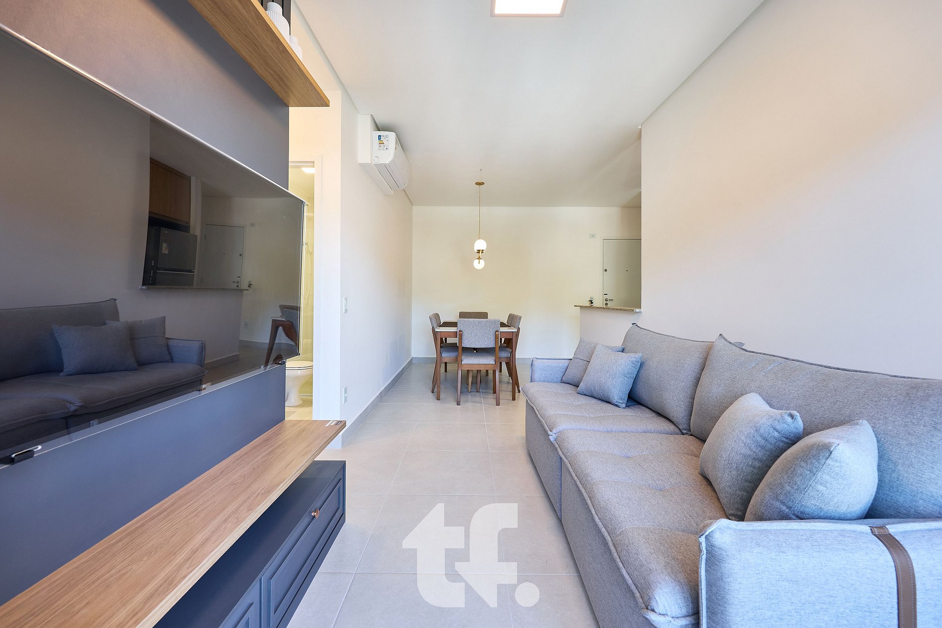 - Sala planejada com TV e ar condicionado