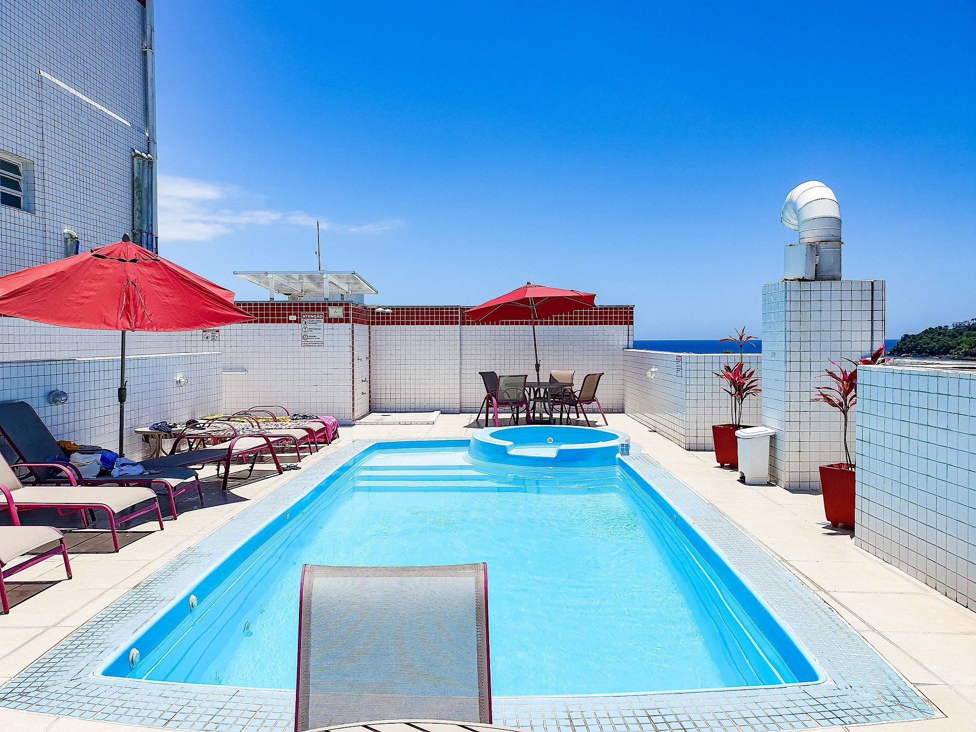 O prédio é bem organizado e limpo. Funcionarios educados e prestativos. As instalações do prédio e da piscina são limpas e bem conservadas e cuidadas. O prédio fica bem próximo da praia.