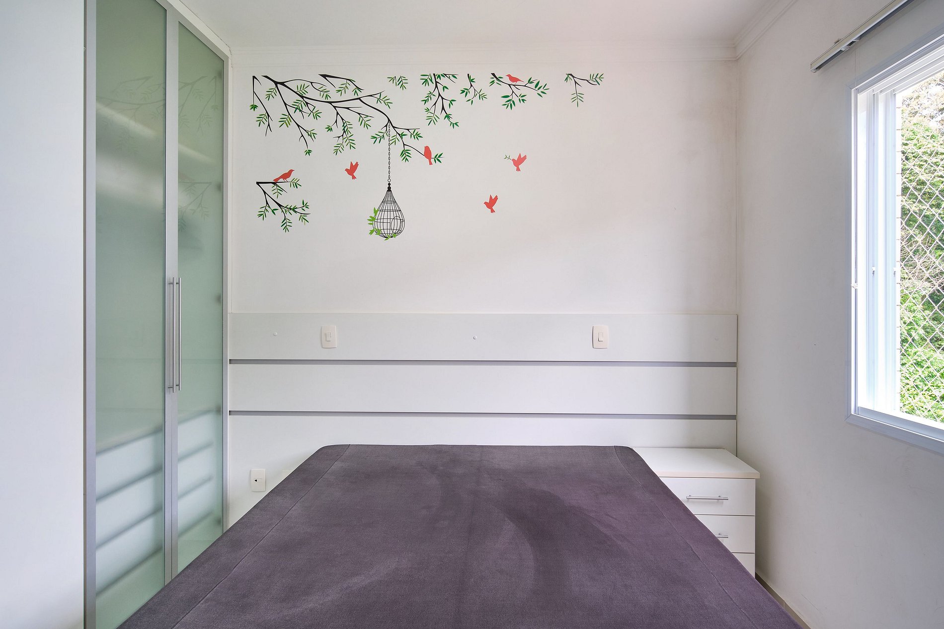 - Suíte com cama de casal, ar condicionado e armário planejado