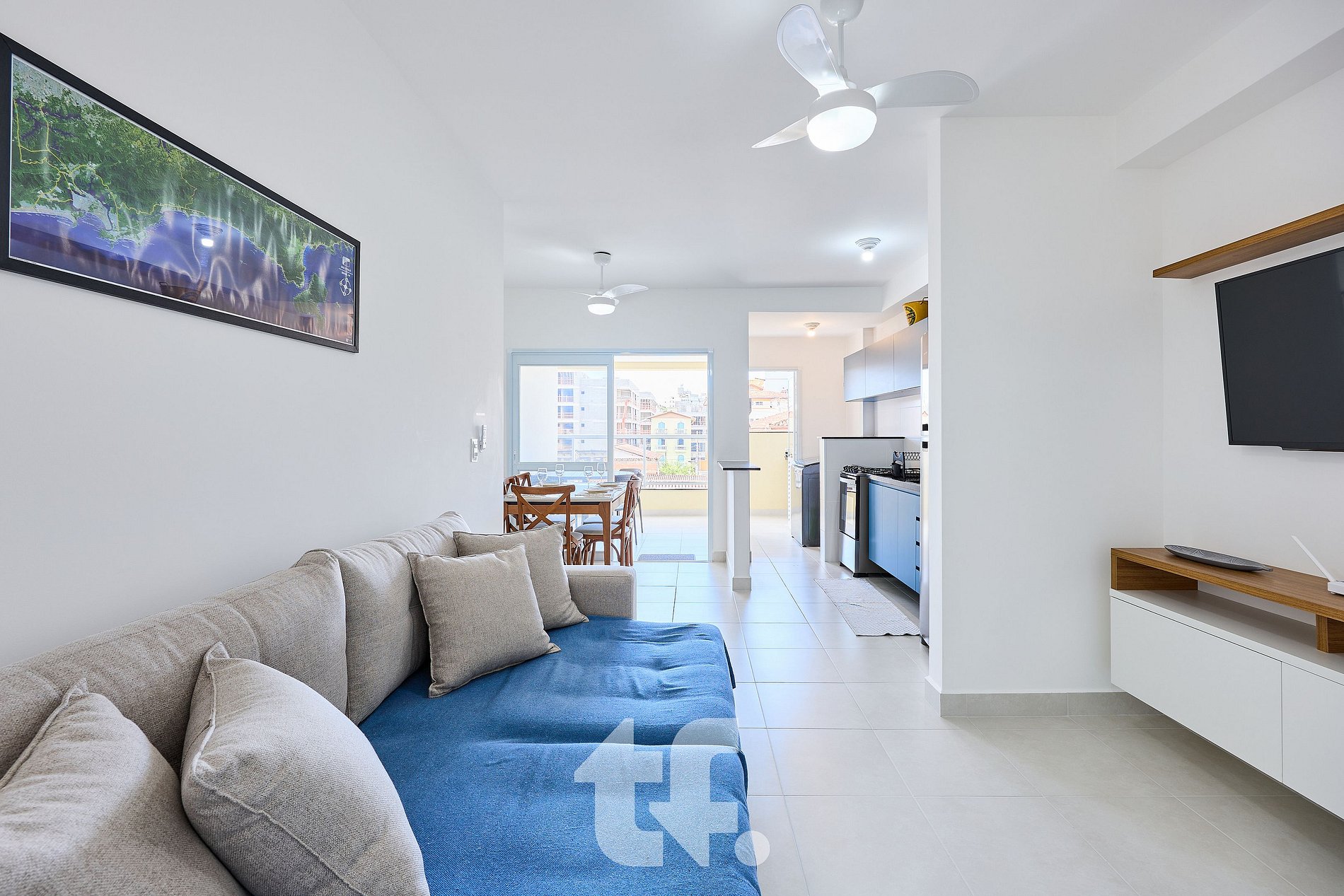 Sala de Estar: Ambiente amplo e iluminado, com TV Smart, ventiladores de teto e móveis planejados, garantindo praticidade e aconchego, a unidade possui fechadura eletronica com senha. O apto acomoda com conforto 4 pessoas + uma criança, ela pode ficar no sofá cama da sala.