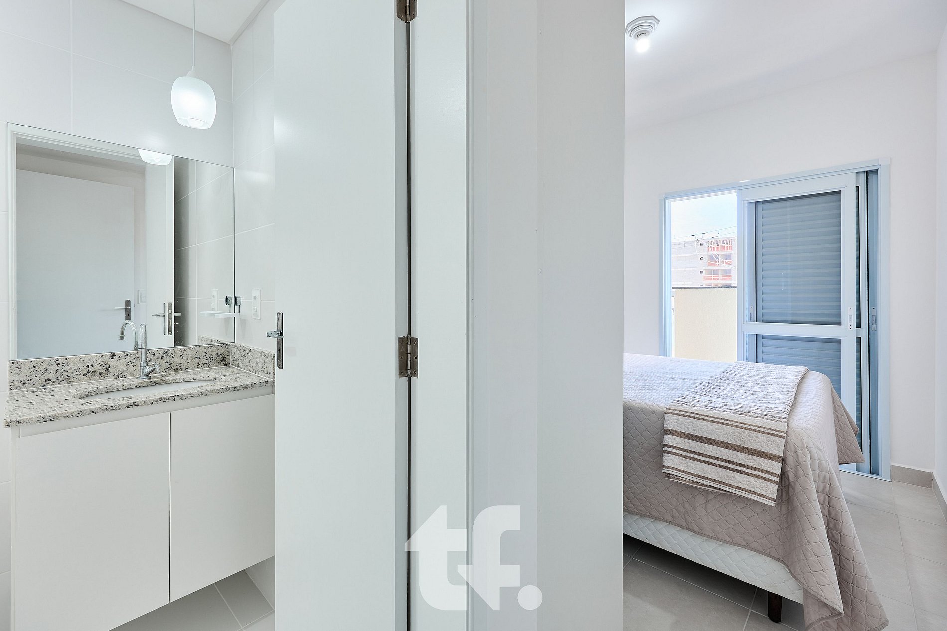 - Suíte possui cama de queen size, armário planejado e Tv smart de 43'